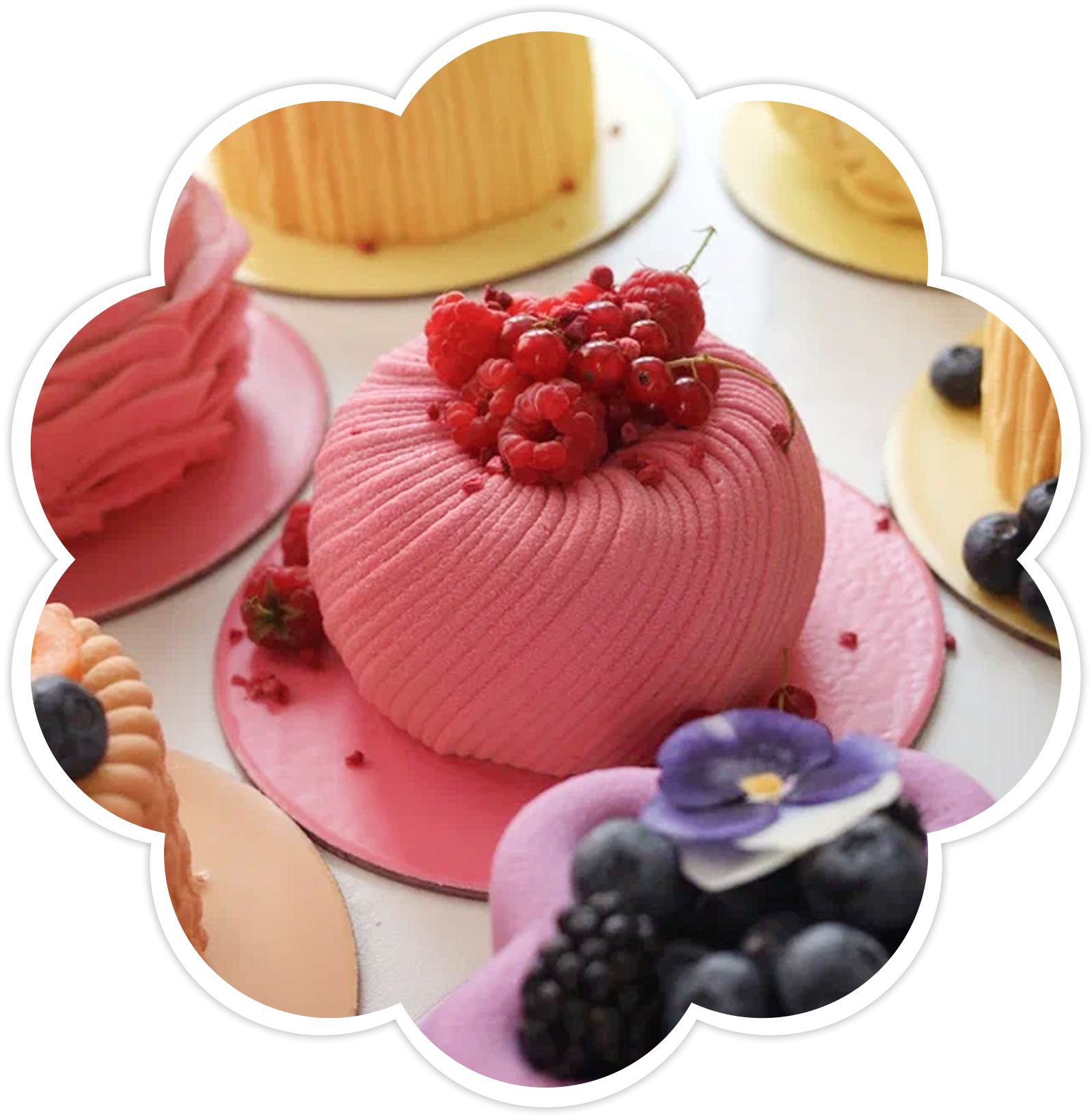 разными видами бисквитов, муссов и кремов.