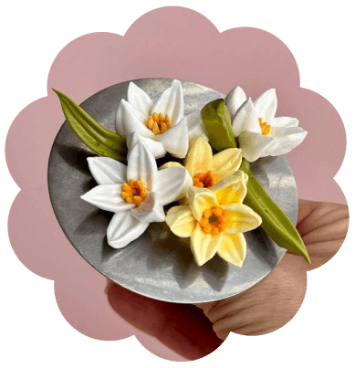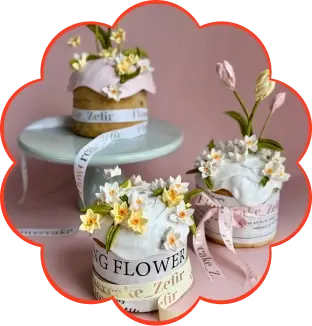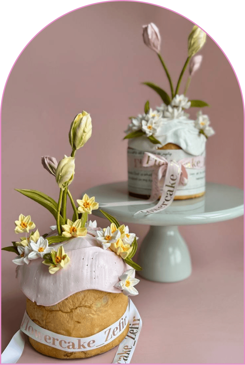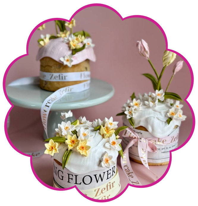 Декор из зефирных нарциссов и тюльпанов для кулича